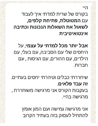גם וגם. יש בו עומק רגשי + הכשרה מלאה + תעודת סיום.