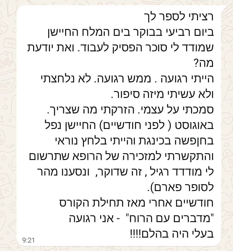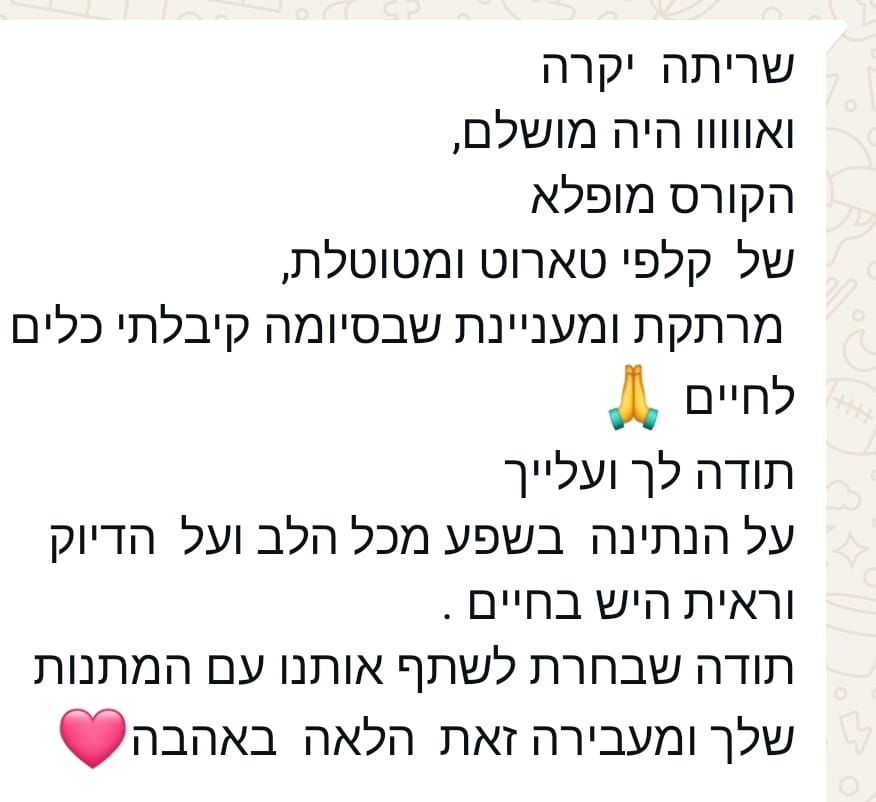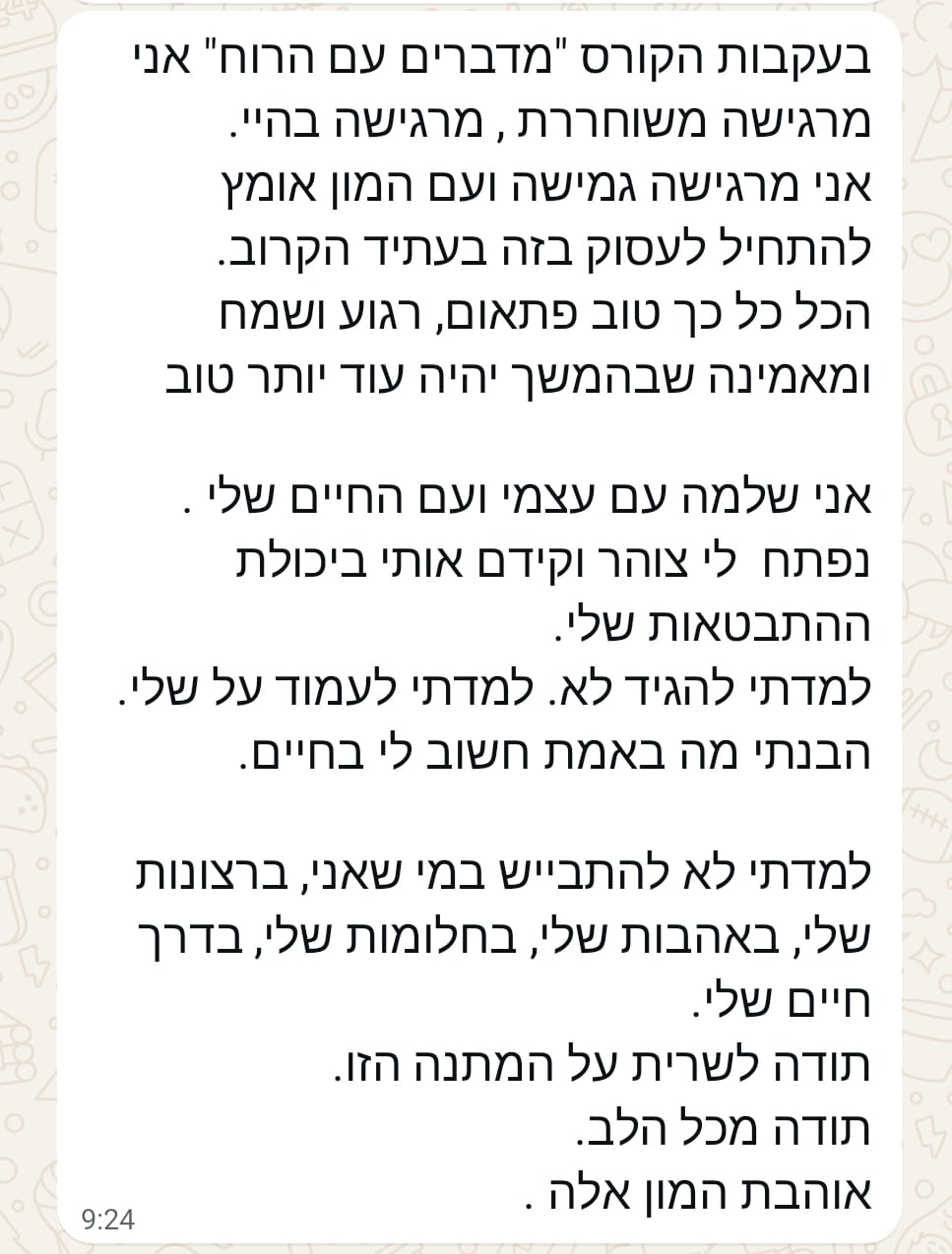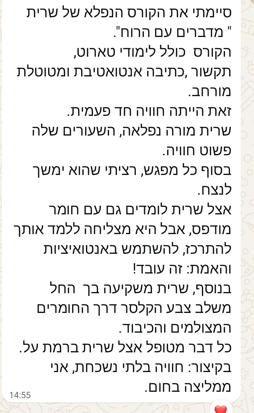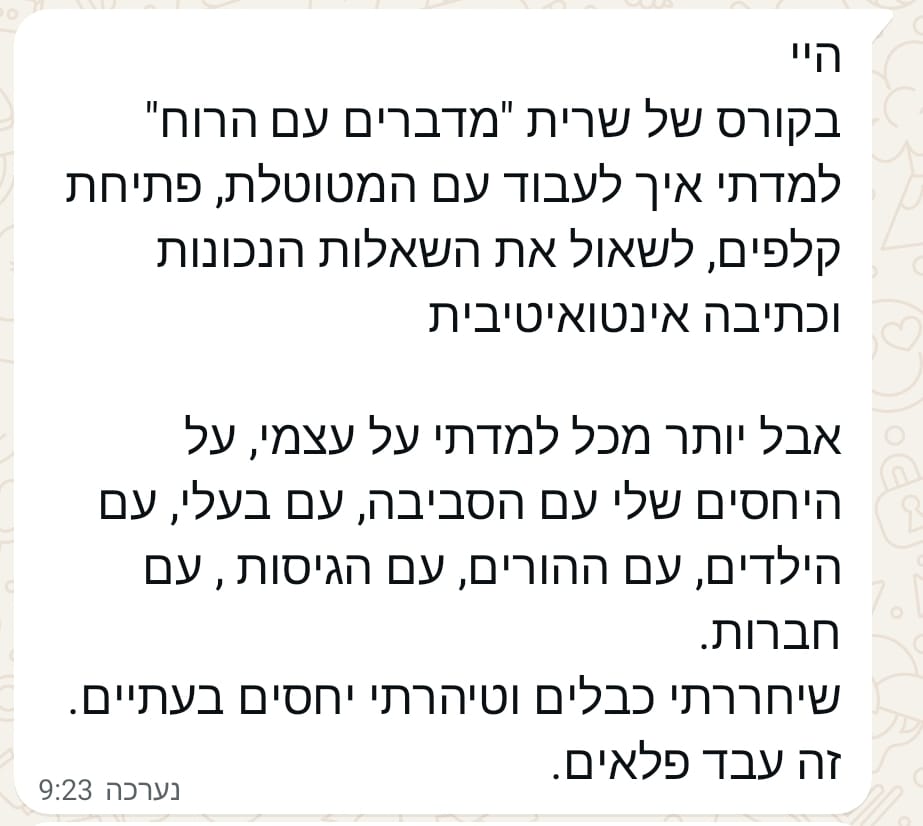 בהחלט. הקורס מיועד גם למי שרוצה להשתלב בתחום הרוח כמטפל/ת, יועץ/ת או מלווה.
